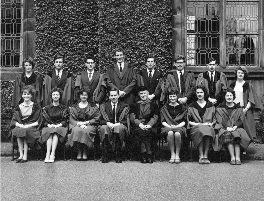 Much activity was promoted by the University’s Musical Society. I contributed the occasional piano or vocal solo at its weekly recitals or the annual Musical Society Concert as well as a solo piano recital. But I was more comfortable acting as accompanist, which provided the opportunity to explore a wider range of music. Over the years I supported a Soprano (Anne Vaughan) in songs by Thomas Linley and Roger Quilter, a Tenor (Robin Howles) in works by Schubert, Dvorak and Brahms, a Contralto (Myra Brown) in Brahms and Wolf lieder, a Violinist (Sarah Gough) in sonatas by Bach, Haydn and Dvorak, and a Bassoonist (David Wallace) in works by Mozart, Godfrey and Thomas Dunhill. There were also piano duets by Schubert with Ken Barclay, and a two-piano recital with Ian Shearer featuring music by Mozart, Arensky, and Lennox Berkeley.